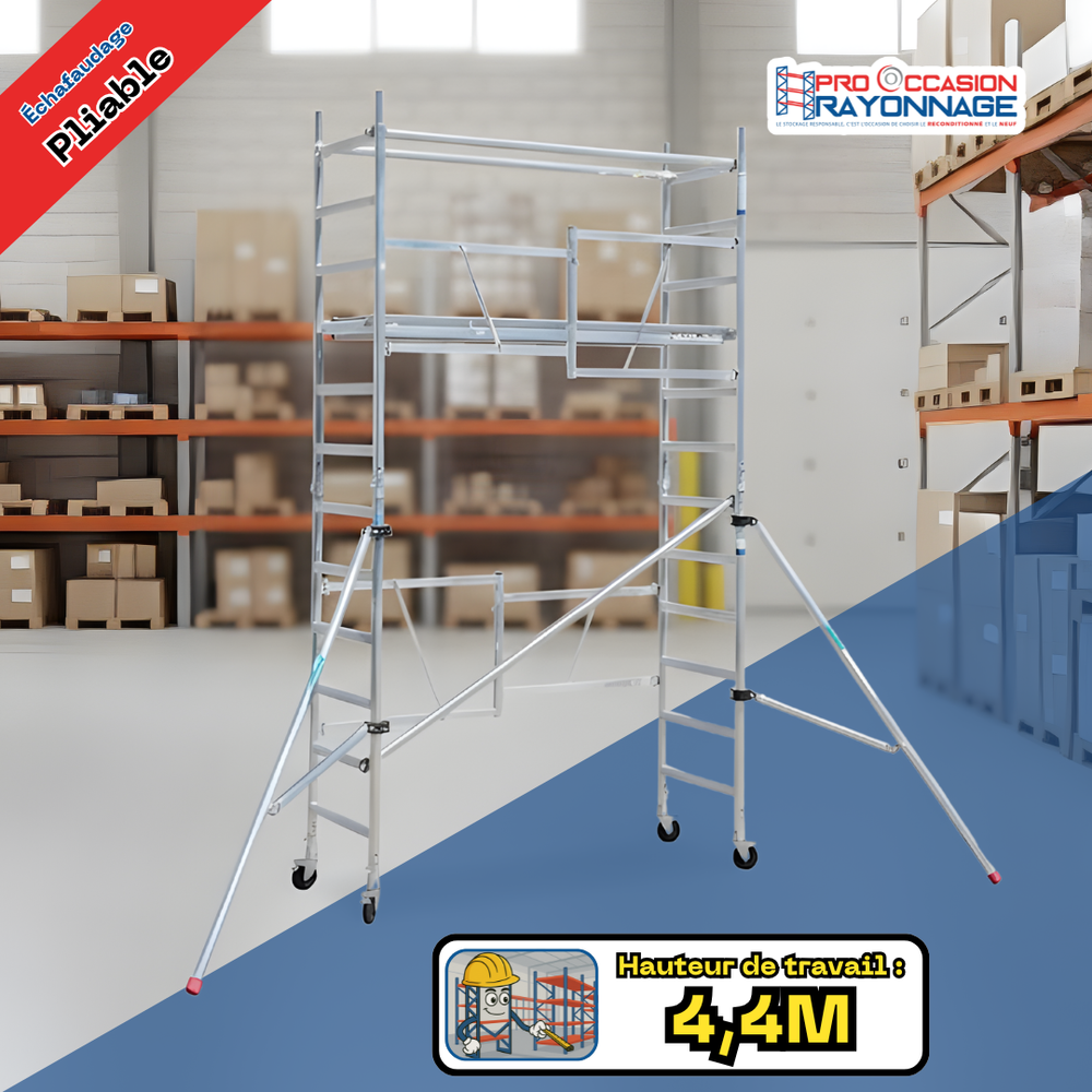 Kit échafaudage pliable – Neuf - Hauteur de travail : 4,40 mètres (Modèle AVEC stabilisateurs télescopiques)