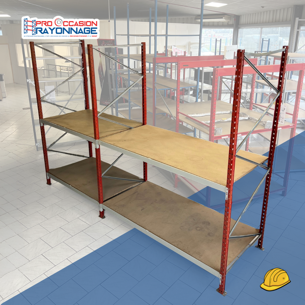 Un rayonnage mi-lourd d'occasion idéal pour ateliers, réserves, zones logistiques et espaces de préparation de commandes. Ce lot est notre dernier stock, livré directement avec 3 échelles obligatoires, à vous ensuite d’ajouter vos niveaux selon vos besoins.