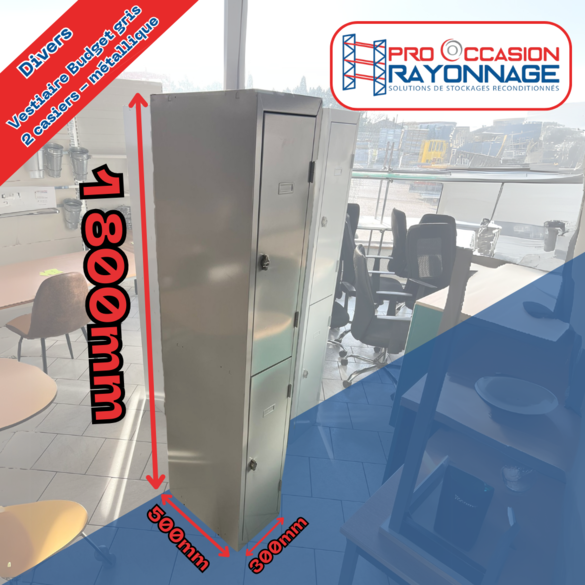 Optez pour un vestiaire métallique budget robuste et fonctionnel pour optimiser vos espaces de rangement. Adapté aux besoins des entreprises, ateliers, écoles ou centres sportifs, ce modèle allie durabilité, organisation et conception sobre . Avec ses 2 compartiments et son support pour vêtements, il est parfait pour un usage professionnel ou collectif. Trouvez votre solution de vestiaire métallique chez Pro Occasion Rayonnage .